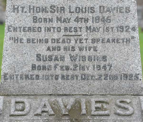 - [S5627] Louis Henry Davies entry Ontario, Canada, Deaths, 1869-1936 - Louis Henry Davies, Beechwood Cemetery Records (Ottawa), Beechwood Cemetery Records, Ottawa,, Ontario, Canada. Hereinafter cited as Ontario, Canada, Deaths, 1869-1936 - Louis Henry Davies.