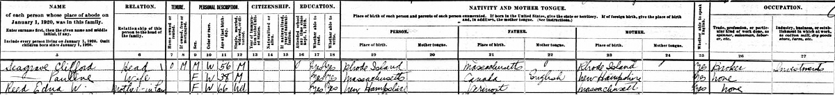 | Alt-Birth Date | An alternate recorded birth date is in 1889 in Reads Corner, Prince County, Prince Edward Island, CanadaG.1 |