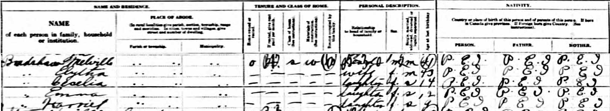 - [S6464] From 003 to 4 June 1911 Microfilm, Library & Archives Canada; 395 Wellington St., Ottawa,, Ontario, Canada, Summerside, Prince County, Prince Edward Island, Library & Archives Canada Page 3, Family #26.