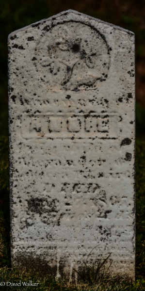 Inscription: Annie / Only child of Alexander & / Rebecca Laird / Died / June 27, 1865 / Æ. 7 mo's, 21 d's.1,2  Tombstone, Annie Laird (1864-1865). North Bedeque Cemetery, Prince County, Prince Edward Island, Canada.