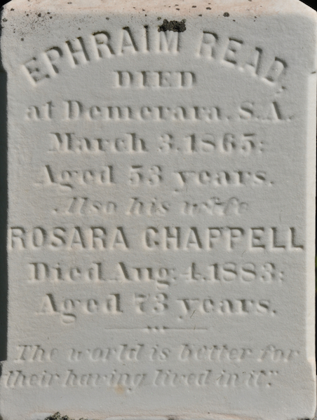 - [S6257] Cemetery Marker - Joseph Read. Joseph Read & Sarah Carruthers, Cemetery Marker; David A. Walker, 18 August 2011.