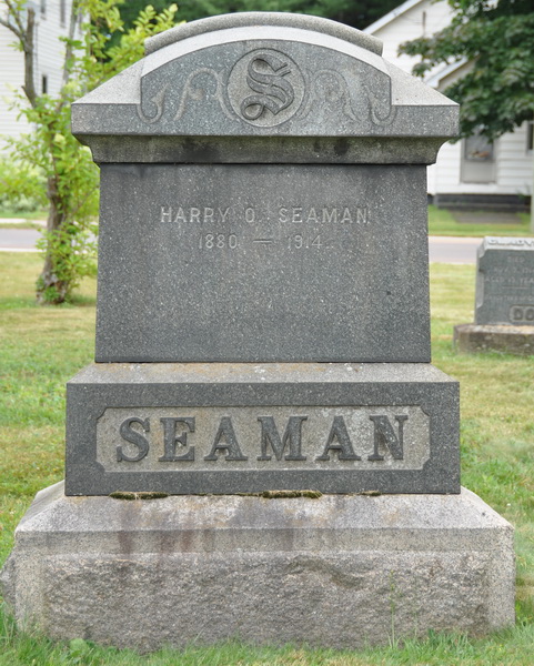 | Burial | He was buried in Elmwood Cemetery, Moncton, Westmorland County, New Brunswick, Canada, 46.10745, -64.77508G. Inscription: Harry O. Seaman / 1880 - 1914 / SEAMAN Left: Judson Jones / 1839 - 1919 / His Wife / Manetta Lutz / 1846 - 1928.2,3 Tombstone, Harry Olen Seaman (1878-1914), his father-in-law Judson Jones (1839-1919), and mother-in-law Manetta Lutz (1846-1928). Elmwood Cemetery, Moncton, Westmorland County, New Brunswick, Canada.  Left inscription detail. |
