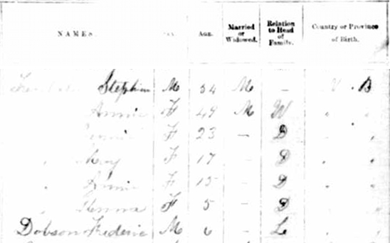 | Witness | He was enumerated on the census in 1881 in the household of Stephen Trenholm in Westmorland Division, Westmorland County, New Brunswick, CanadaG. included in the household with Stephen (age 44) were his wife Annie Allen (age 40), children, Emma (age 16), Jane (age 14), Harry (age 12), Mary (age 8) and Annie (age 5). Stephen was a house joiner. The family religion was Brethren (Mennonite). The on-line digital image for this census is of very poor quality, and is not included here.1 |