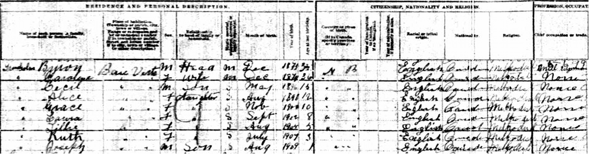 | Occupation | He was a machinist with the Canadian National Railway. From 1901 to 1921 in Moncton, Westmorland County, New Brunswick, CanadaG.3