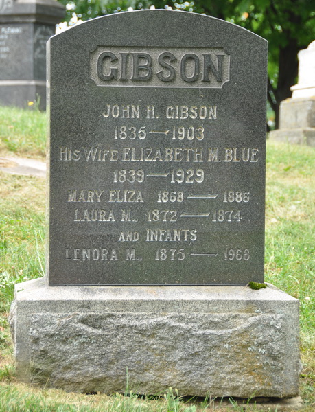 - [S7425] Tombstone, Elmwood Cemetery, Moncton, New Brunswick, Canada. John H. Gibson & Elizabeth Blue, tombstone inscription; read by David A. Walker, 2 August 2012.