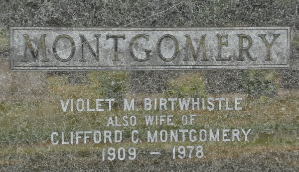 | Burial | He was buried in the Peoples Cemetery, Summerside, Prince County, Prince Edward Island, Canada, 46.40504, -63.77589G. Inscription: MONTGOMERY / In Loving Memory of / Clifford C. Montgomery / 1907 - 1987 / Helen E. Leard / 1912 - 1948 / Wife of / Clifford C. Montgomery Back: MONTGOMERY / Violet M. Birtwhistle / Also Wife of / Clifford C. Montgomery / 1909 - 1978.3![]() Tombstone, Clifford C. Montgomery (1907-1987), his first wife Helen E. Leard (1912-1948), his second wife Violet M. Birtwhistle (1909-1978). Peoples Cemetery, Summerside, Prince County, Prince Edward Island, Canada. ![]() Back inscription detail. |