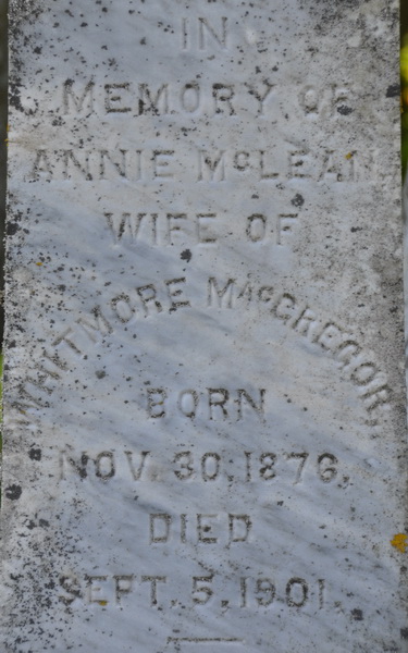 | Burial | She was buried in the Peoples Cemetery, Summerside, Prince County, Prince Edward Island, Canada, 46.40515, -63.77676G.