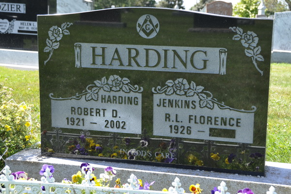 | Burial | He was buried in the Peoples Cemetery, Malpeque, Prince County, Prince Edward Island, Canada, 46.53037, -63.68653G. Section B, Row 3, #259. Inscription: HARDING / Harding / Robert D. / 1921 - 2002 | Jenkins / R. L. Florence / 1926 - / In God's CareBack: HARDING.1,2 Tombstone, Robert D. Harding (1921-2002), his wife R. L. Florence Jenkins (1926- ). Peoples Cemetery, Malpeque, Prince County, Prince Edward Island, Canada. |