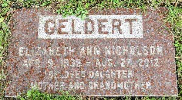 | Name | Elizabeth Ann Nicholson was also known as Elizabeth Ann Geldert.1 |