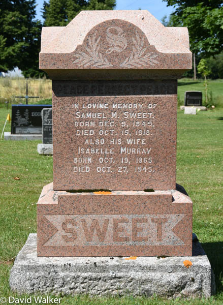 | Death | Samuel Metherall Sweet died on 15 October 1918 in Knutsford, Prince County, Prince Edward Island, CanadaG.