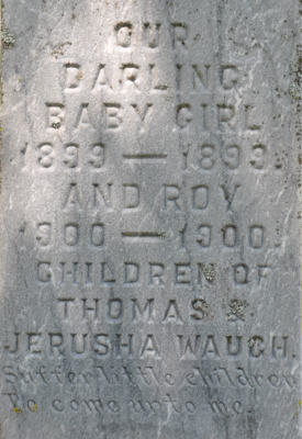 - [S10772] Cemetery Marker, Peoples Cemetery, Freetown, Prince County, Prince Edward Island, Canada. Samuel J. Waugh family plot, tombstone inscription & photograph; read by David A. Walker, 26 August 2015.