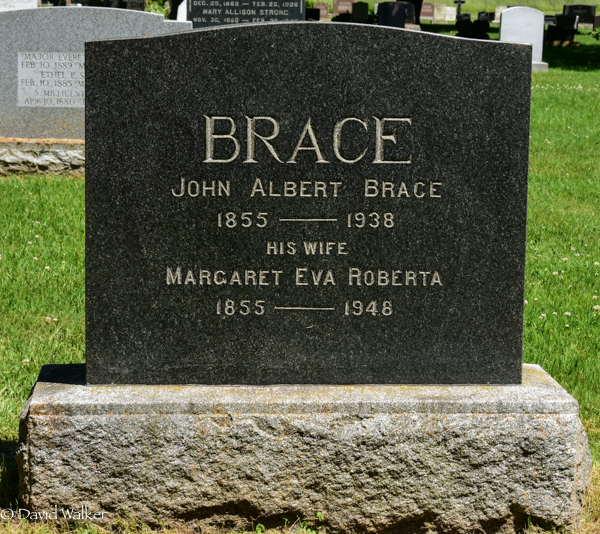 Inscription: BRACE / John Albert Brace / 1855 - 1938 / His Wife / Margaret Eva Roberta / 1855 - 1948