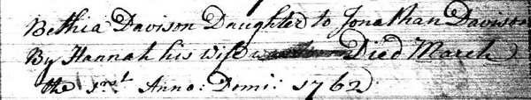 | Death | Bethia Davison died on 1 March 1762.1 Death record, Bethia Davison. |