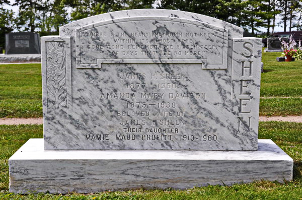 | Burial | She was buried in the Peoples Cemetery, Kensington, Prince County, Prince Edward Island, Canada, 46.44779, -63.62863G.