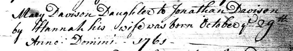 | Birth | Mary Davison was born on 29 October 1761, in Preston, New London County, ConnecticutG.1 Birth record, Mary Davison. |