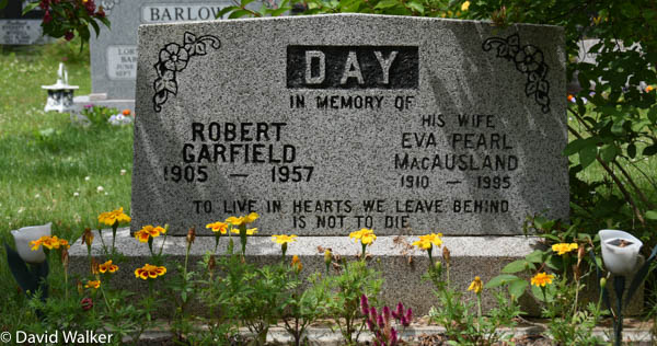 | Principal 2 | She witnessed the burial of Robert Sterling Barlow and Edna M. Birch in the Peoples Cemetery, Summerside, Prince County, Prince Edward Island, Canada, 46.406848, -63.775895G.1,3 Tombstone, Robert Sterling Barlow (1906-2000), his wife Edna M. Birch (1917-1998), their children Sharon (1952-1952), Karen (1953-1956), Heather (1957-1957) and Gary (1942-1996). Peoples Cemetery, Summerside, Prince County, Prince Edward Island, Canada. |