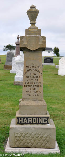 - [S10821] Cemetery Marker, United Church Cemetery, Summerfield, Queens County, Prince Edward Island, Canada. Samuel Harding family plot, tombstone inscription & photograph; read by David A. Walker, 20 September 2015.