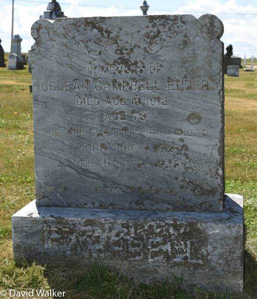 | Burial | He was buried in the People's Cemetery, Breadalbane, Queens County, Prince Edward Island, Canada, 46.35270, -63.50391G.