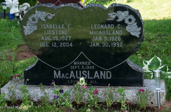 - [S12287] Cemetery marker, Peoples Cemetery, Summerside, Prince County, Prince Edward Island, Canada. Leonard Jeffery & Ruth P. MacAusland, tombstone inscription & photograph; read by David A. Walker, 18 June 2017.