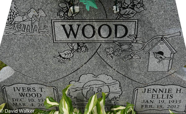Inscription: WOOD / Ivers T. / Wood / Dec. 10, 1924 / Mar. 4, 2004 | Together Forever | Married / Nov. 1, 1952 | Jennie H. Ellis / Jan. 19, 1935 / Feb. 18, 2012.1,2  Tombstone, Ivers T. Wood (1924-2004), his wife Jennie H. Ellis (1935-2012). United Church Cemetery, West Devon, Prince County, Prince Edward Island, Canada.