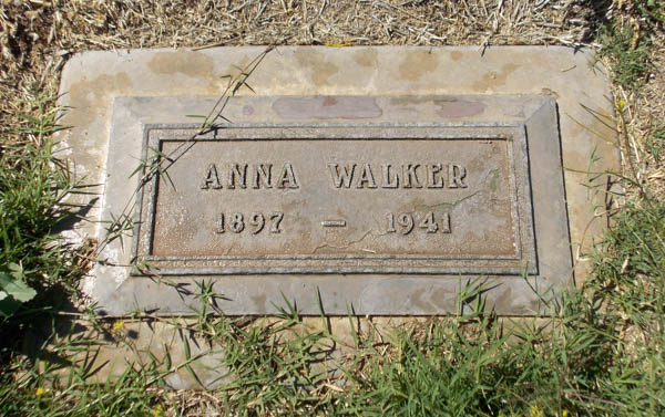 Inscription: Anna Walker / 1897 - 1941.3,8  Tombstone, Anna (Arne) Walker (1897-1941). Desert Lawn Cemetery, Yuma, Yuma County, Arizona, U.S.A. Photo courtesy of Chuck O. Fortune.
