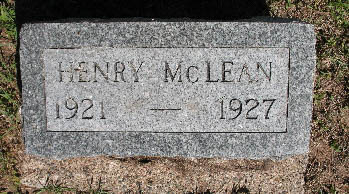 Inscription: Henry McLean / 1921 - 1927.1  Tombstone, Henry Allen McLean (1921-1927). Riverside Cemetery, Ontonagon, Ontonagon County, Michigan, U.S.A. Photo courtesy of findagrave.com.