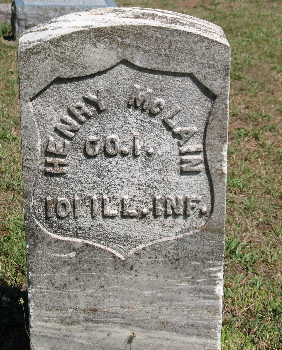 Inscription: Henry McLain / Co. I / 101 Ill. Inf.1  Henry McLain/McLean (ca. 1836-1912). Riverside Cemetery, Ontonagon, Ontonagon County, Michigan, U.S.A.