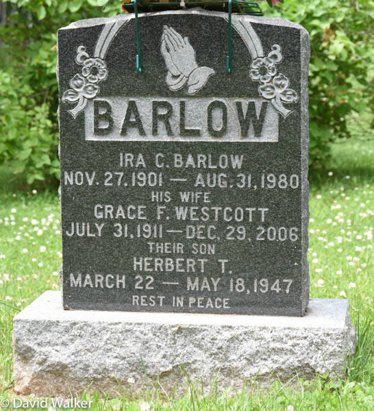 - [S12505] Cemetery marker, Hillside Cemetery, Wellington, Prince County, Prince Edward Island, Canada. Ernest K. Carr & Lois Barlow, tombstone inscription & photograph; read by David A. Walker, 5 August 2017.