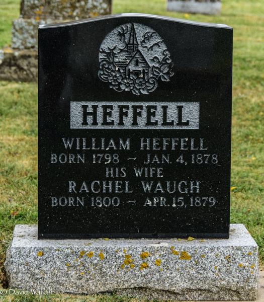 - [S14454] Cemetery marker, Presbyterian/United Cemetery, North Bedeque, Prince County, Prince Edward Island, Canada. William Heffell & Rachel Waugh, tombstone inscription & photograph; documented by David A. Walker, 15 August 2019.