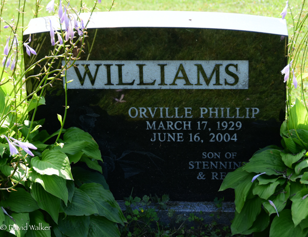 Inscription: WILLIAMS / Orville Phillip / March 17, 1929 / June 16, 2004 / Son of Stenning / & Reby.3,1  Tombstone, Orville Phillip Williams (1929-2004). United Church Cemetery, Tyne Valley, Prince County, Prince Edward Island, Canada.
