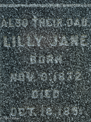 Inscription: In Memory of / Andrew B. Humphrey / Born July 15, 1829 / Died Nov. 21, 1904 / And His Wife / Catherine / Born Nov. 12, 1820 / Died Oct. 15, 1907Right: Also Their Dau. / Lilly Jane / Born / Nov. 9, 1872 / Died / Oct. 18, 1891.2,1  Tombstone, Andrew B Humphrey (1929-1904), his wife Catherine Scott Stavert (1820-1907), their daughter Lilly Jane (1872-1891). Peoples Cemetery, Malpeque, Prince County, Prince Edward Island, Canada.  Right inscription.