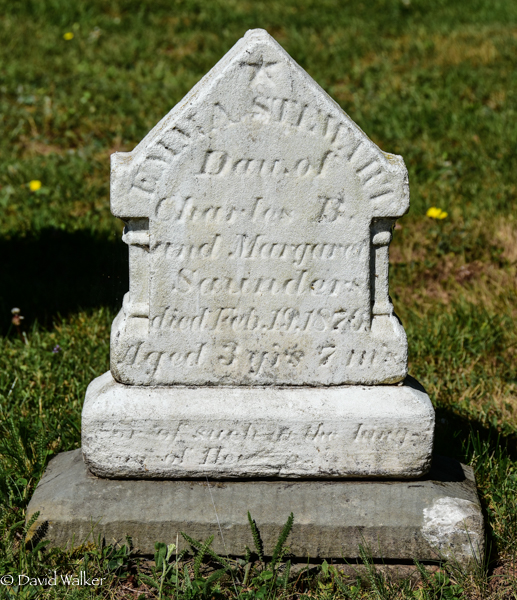- [S12437] Cemetery marker, United/Presbyterian Cemetery, North Bedeque, Prince County, Prince Edward Island, Canada. Laura V. Stavert family plot, tombstone inscription & photograph; read by David A. Walker, 19 July 2017.