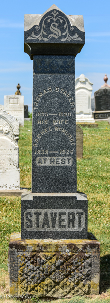 - [S12434] Cemetery marker, United/Presbyterian Cemetery, North Bedeque, Prince County, Prince Edward Island, Canada. Thomas Stavert family plot, tombstone inscription & photograph; read by David A. Walker, 19 July 2017.