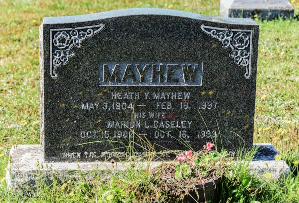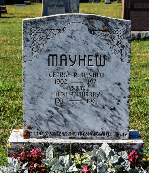 - [S14526] Cemetery marker, United Church Cemetery, Margate, Prince County, Prince Edward Island, Canada. William Chester Howard & Elsie L. Mayhew, tombstone inscription & photograph; documented by David A. Walker, 31 August 2019.