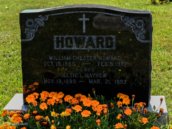 Inscription: HOWARD / William Chester Howard / Oct. 19, 1886 - Feb. 5, 1977 / His Wife / Elsie L. Mayhew / Nov. 19, 1898 - Mar. 21, 1993.1,2  Cemetery Marker: William Chester Howard (1886-1977), his wife Elsie L. Mayhew (1898-1993). United Church Cemetery, Margate, Prince County, Prince Edward Island, Canada.