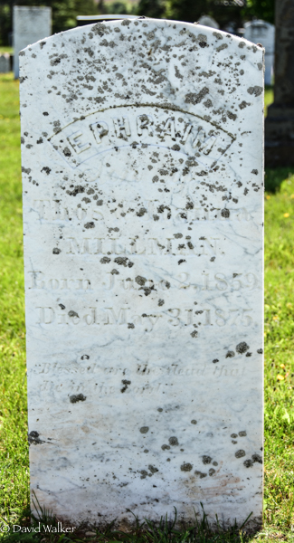 - [S14522] Cemetery marker, Peoples Cemetery, Kensington, Prince County, Prince Edward Island, Canada. Miranda Dawn Wadman, tombstone inscription & photograph; documented by David A. Walker, 31 August 2019.