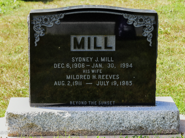Inscription: MILL / Sydney J. Mill / Dec. 6, 1906 - Jan. 30, 1994 / His Wife / Mildred H. Reeves / Aug. 2, 1911 - July 19, 1985.2,3  Cemetery Marker: Sydney J. Mill (1906-1994), his wife Mildred H. Reeves (1911-1985). Peoples Cemetery, Kensington, Prince County, Prince Edward Island, Canada.