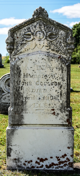Inscription: In / Memory of / John Coulson / Died / April 1, 1908, / Æt. 81 / Gone But Not Forgotten.1,2  Cemetery Marker: John Coulson (c1827-1908). St. Thomas Anglican Church Cemetery, Springbrook, Queens County, Prince Edward Island, Canada.