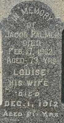 - [S13262] Cemetery marker, United Baptist Cemetery, Waterville, Carleton County, New Brunswick, Canada. Jacob Palmer & Louisa True, tombstone inscription & photograph; read by David A. Walker, 12 May 2018.