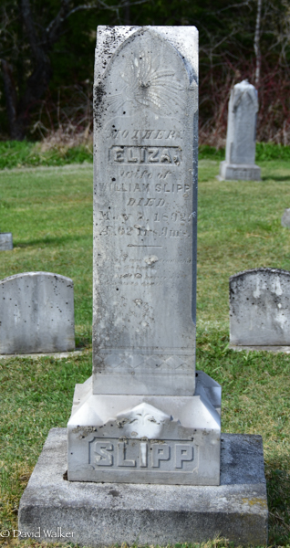 | Principal 2 | She witnessed the burial of Jacob Sunderland Palmer and Louise True in United Baptist Church Cemetery, Waterville, Carleton County, New Brunswick, Canada, 46.28339, -67.60696G.3 Tombstone, Jacob Palmer (c1830-1902), his wife Louise True (1831-1912). United Baptist Church Cemetery, Waterville, Carleton County, New Brunswick, Canada.  Front inscription detail.  Right inscription.  Back inscription. |