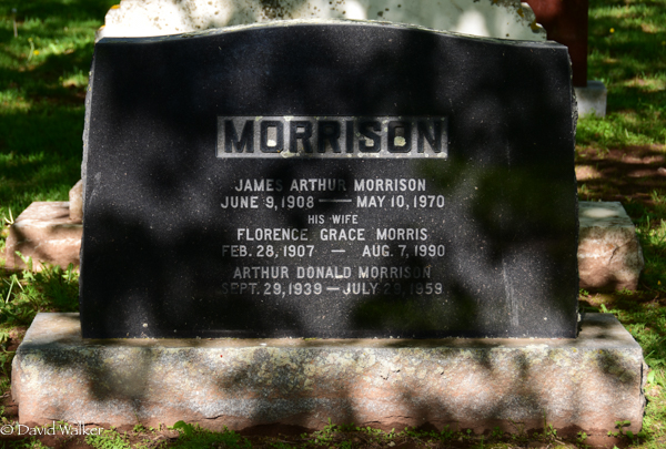 - [S13316] Cemetery marker, Peoples Cemetery, Summerside, Prince County, Prince Edward Island, Canada. James Arthur Morrison & Florence Grace Morris family plot, tombstone inscription & photograph; documented by David A. Walker, 15 June 2018.