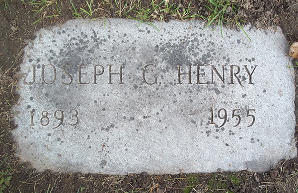 Inscription Front: Joseph G. Henry / 1893 - 1955.13  Marker, Joseph Gladstone Henry (1898-1955). Deepdale Memorial Park, Delta Township. Michigan, U.S.A. Photo courtesy of Linda Hughes (findagrave.com).