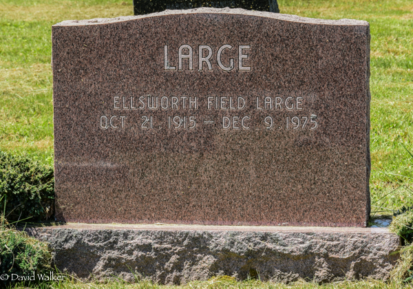 Inscription: LARGE / Ellsworth Field Large / Oct. 21, 1915 - Dec. 9, 1975.1  Tombstone, Ellsworth Field Large (1915-1975). Westmoreland Baptist Cemetery, Queens County, Prince Edward Island, Canada.
