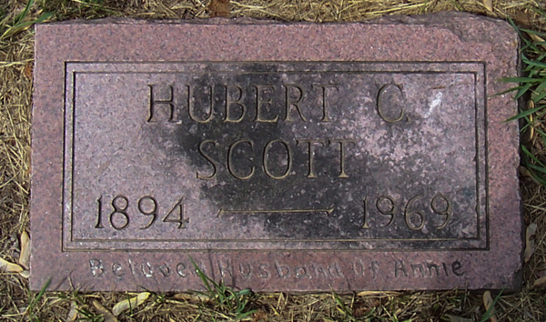 Inscription Front: Hubert C. / Scott / 1894 - 1969 / Beloved Husband of Annie.3  Marker, Hubert C. Scott (1894-1969). Greenhill Cemetery, Kingsville, Essex County, Ontario, Canada. Photo courtesy of findagrave.com.