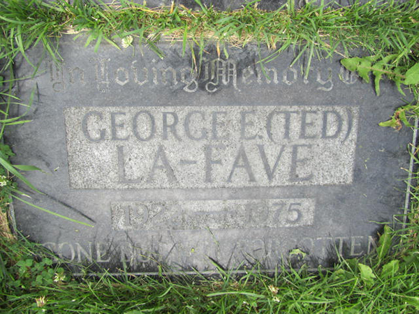 Inscription Front: In Loving Memory of / George E. (Ted) / La-Fave / 1922 - 1975.1  Marker, George Edward 'Ted' Lafave (1922-1975). Hillside Cemetery, Kamloops, British Columbia, Canada. Photo courtesy of findagrave.com.