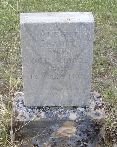 Inscription: Albert / Sharpe / Died / Oct. 4, 1902 / Aged / 16 Yrs. 9 Mos.3  Marker, Albert Locke Sharpe (1886-1902). Old Highland Cemetery, Great Falls, Montana, U.S.A. Photo courtesy of JW (findagrave.com).