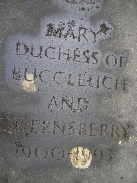 | Interred | She was buried in the plot of Walter John Montagu Douglas Scott, Earl of Dalkeith, later 8th Duke of Bucchleuch and Queensberry, in among the ruins of Melrose Abbey, Melrose, Scotland, 55.598889, -2.717778G.3 Ruins of Melrose Abbey.Courtesy of Wikipedia.  Melrose Abbey as it appeared in 1800. Courtesy of Wikipedia.  Melrose Abbey, viewed from the graveyard. Courtesy of Wikipedia.  Grave marker of Mary (Lascelles) Montagu Douglas Scott 1900-1993. Courtesy of findagrave.com. |