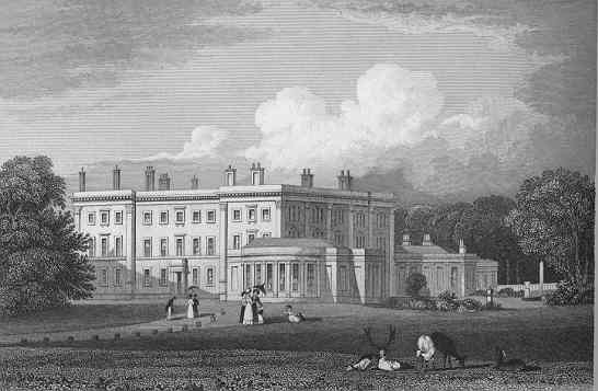 | Marriage | He married first Lady Elizabeth Georgiana Sutherland-Leveson-Gower daughter of The Right Honourable George Grenville Sutherland-Leveson-Gower, 2nd Duke of Sutherland, Earl Gower, and Harriet Elizabeth Georgiana Howard, Duchess of Sutherland,, on 31 July 1844 in the Leveson-Gore estate, Trentham Hall, Trentham, Staffordshire, EnglandG, Their marriage resulted in he joining of Scotland's largest landowning families. George's father gave them Rosneath as a wedding present.3 Trentham Hall in the 1820s. Courtesy of Wikipedia.  Trentham Hall in 1880 after excessive expansion. Courtesy of Wikipedia. |