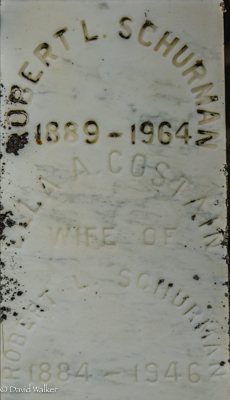 Inscription: SCHURMAN / Howard S. Schurman / Mar. 8, 1897 - July 18, 1995 / His Beloved Wife / Ruth S. Wood / Dec. 6, 1899 - Aug. 27, 1984 / Loved By All.1,2  Tombstone, Howard S. Schurman (1897-1995), his wife Ruth S. Wood (1899-1984). United-Baptist Cemetery, Central Bedeque, Prince County, Prince Edward Island, Canada.