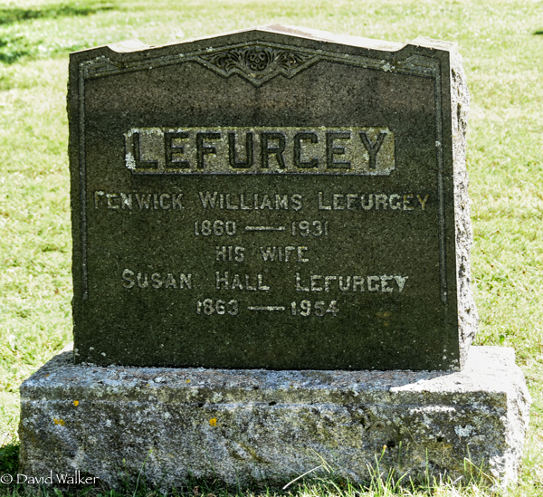Inscription: LEFURGEY / Fenwick Williams Lefurgey / 1860 - 1931 / His Wife / Susan Hall Lefurgey / 1863 - 1954.1,2  Tombstone, Fenwick Williams Lefurgey (1860-1931), his wife Susan Hall (1863-1954). United-Baptist Cemetery, Central Bedeque, Prince County, Prince Edward Island, Canada.